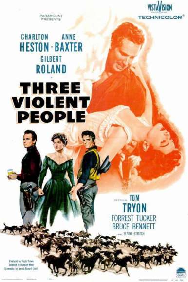 "Three Violent People" is a reasonable western that shows an after-war period and its consequences. The story has some good moments, mostly when Anne Baxter participates in the role of a witty lady with a past that experiences love for the first time in her life. Charlton Heston fits perfectly to the role of Captain Colt Saunders. However, the conclusion is too much corny and moralist. Although not being a great movie, "Three Violent People" is a good entertainment.