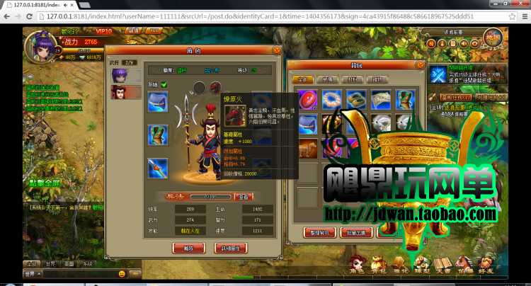 特色说明:随意刷人物等级,无限元宝、无限金卷。无限银币。无限行动力。
