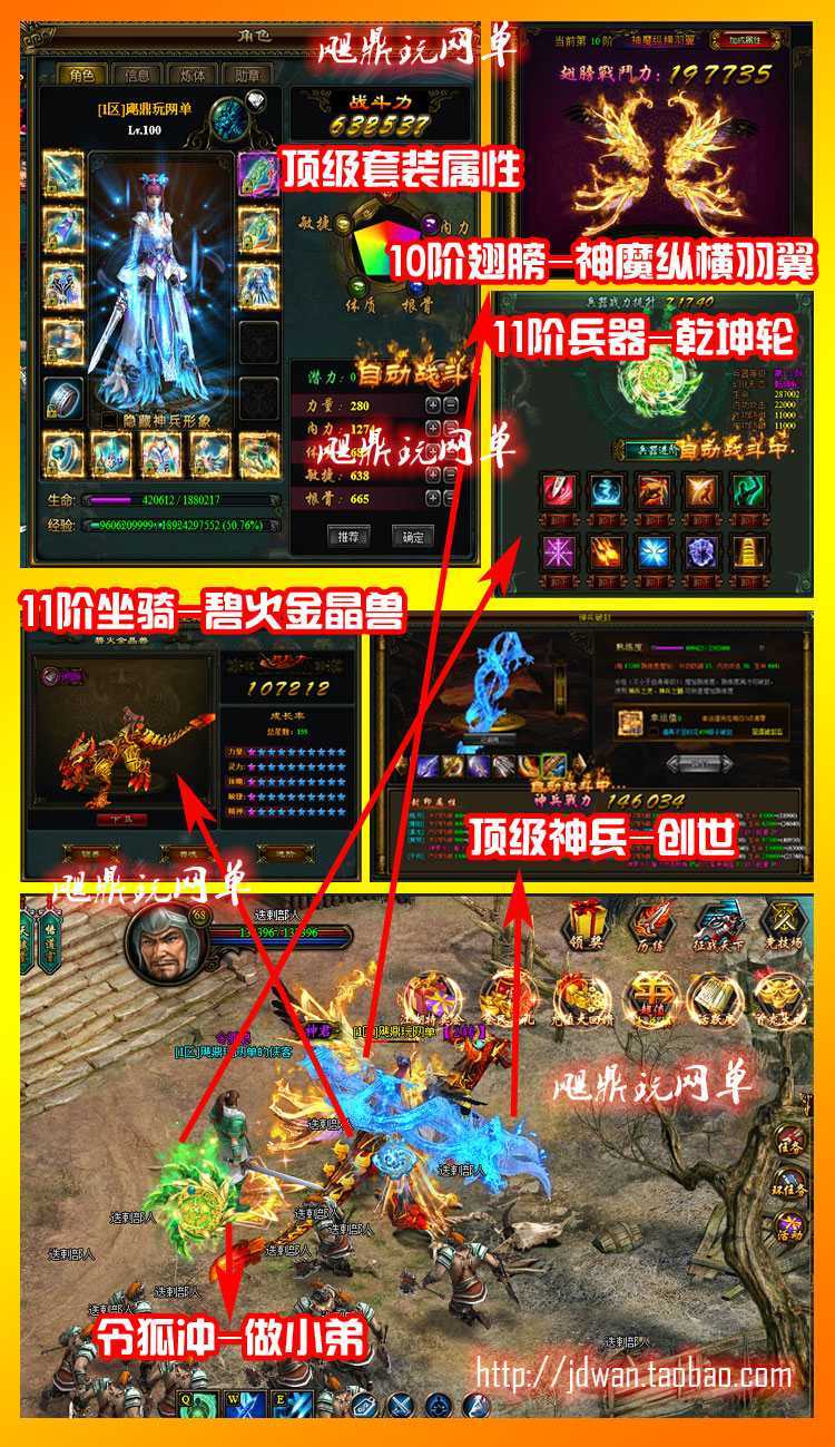 【版本说明】仿官方,10阶光翼、11阶坐骑、11阶兵器、顶级神兵创世,满强化套装发光特效,江湖将领全打开。GM工具修改属性,发装备物品,无错端,功能齐全