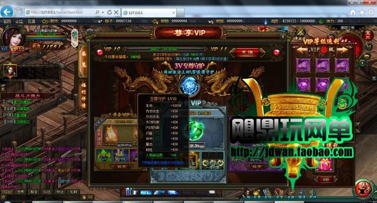 GM特色说明:无限元宝、刷装备、无限VIP等。。。