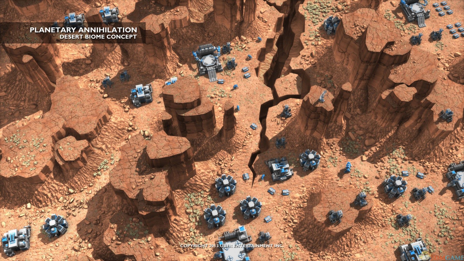 《行星的毁灭(Planetary Annihilation)》是一款由 UBER 所开发的即时战略游戏,UBER 算是一个才刚创立的游戏开发团队,但本身却已有相当的游戏开发经验,有参与过《终极动员令:将军》、《魔戒:中土战争》和最早的经典战略游戏《横扫千军》。本作可以说是《横扫千军》进化版本,画面大幅改善、特效也提升了不少,但最重要的是新加入的元素,「星球」。《行星的毁灭:泰坦(Planetary Annihilation: TITANS)》是《行星的毁灭》的一个大型独立资料片,已经包含了《行星的毁灭》原版游戏并增加了大量新要素。