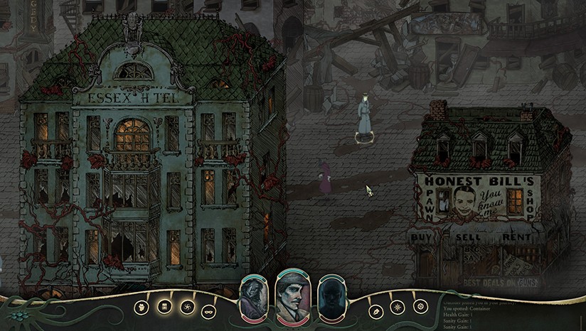 呈现洛夫克拉夫特宇宙恐怖与恐惧主题的手绘2D世界。