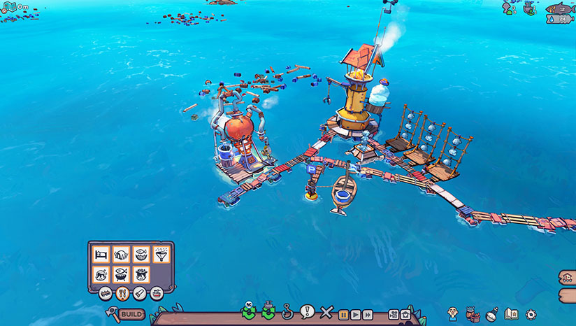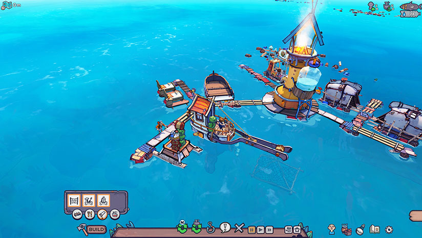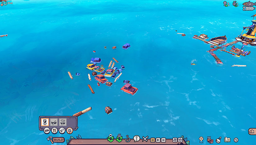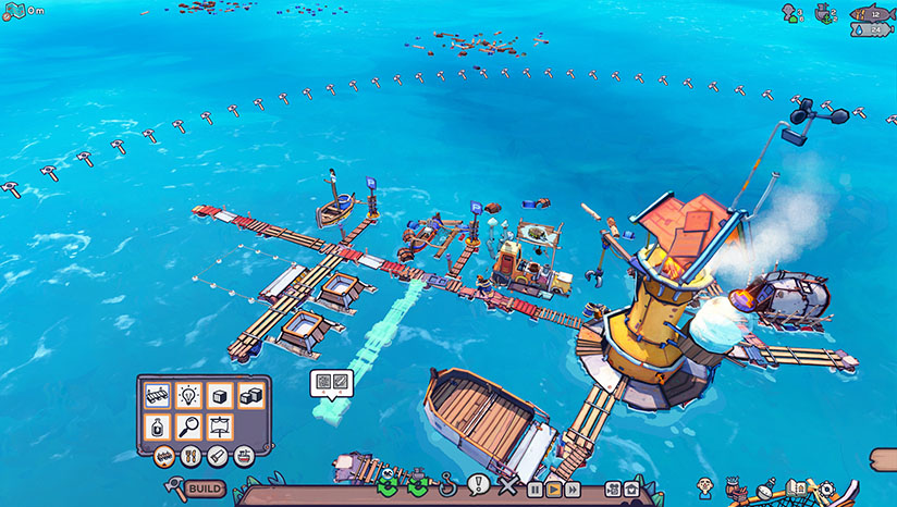 游戏从一个小小的“救生船”开始,玩家需要收集海上的各种漂浮物,将自己的周围堆满越来越多的物品,逐渐扩大自己的生活圈。之后就可以在此之上建设自己的村落、都市等。