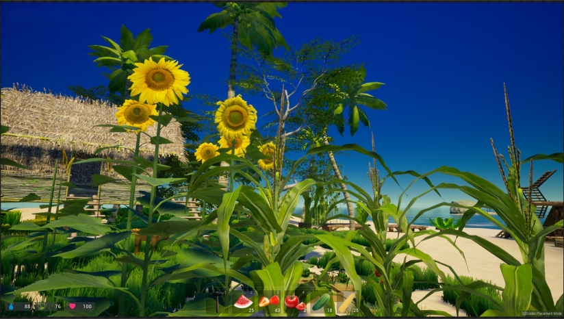 除了农作物,你还可以种植树木,目前可种植的多达7种椰子树,苹果树,竹子,多种农作物:西瓜、玉米、小麦、黄瓜、番茄、草莓、向日葵等(未来将加入更多种类的树木和作物),当你拥有种子和水,就可以种下一棵树或农作物,你甚至改变树木未来的生长方向。
