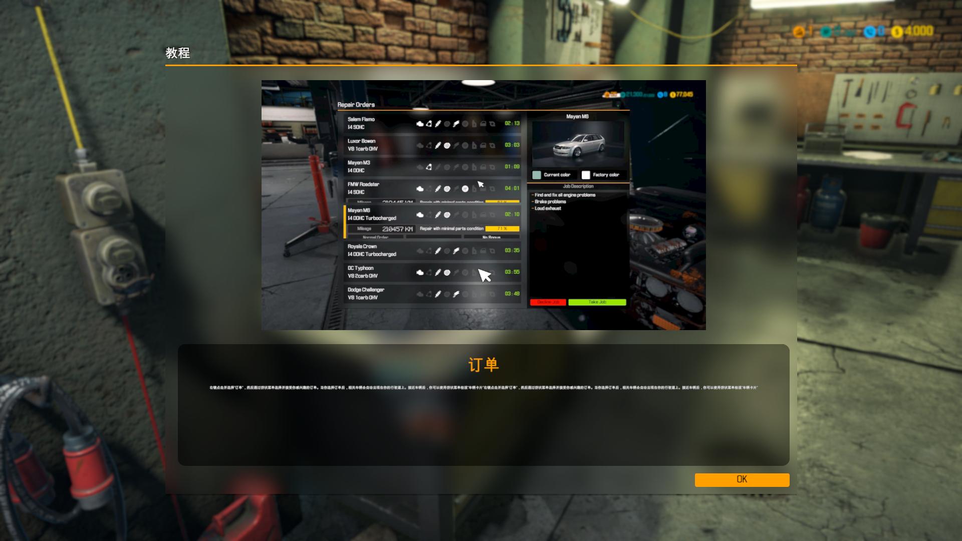 你需要熟悉汽车的配件和你的汽车坏在哪里,然后使用工具进行修理,有些工具可以进行强化加强是修理的时间变短。能否开起你的连锁店就给看你的修理能力啦