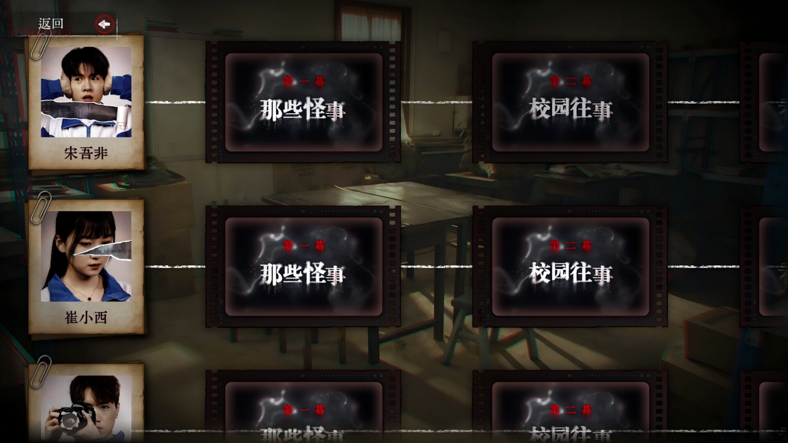 《看不见的我们》是一款全动态影像真人悬疑推理游戏。玩家将扮演男主角宋吾非,因为从小的原生家庭问题,导致了容易害怕和逃避的性格。在进入高中后遇到了校霸,遭到各种霸凌,当主角毫无办法之际,一位勇敢的女同学挺身而出,组织大家反抗霸凌。最终形成了一系列悬疑事件,等待玩家去推理还原所有事情的真相。