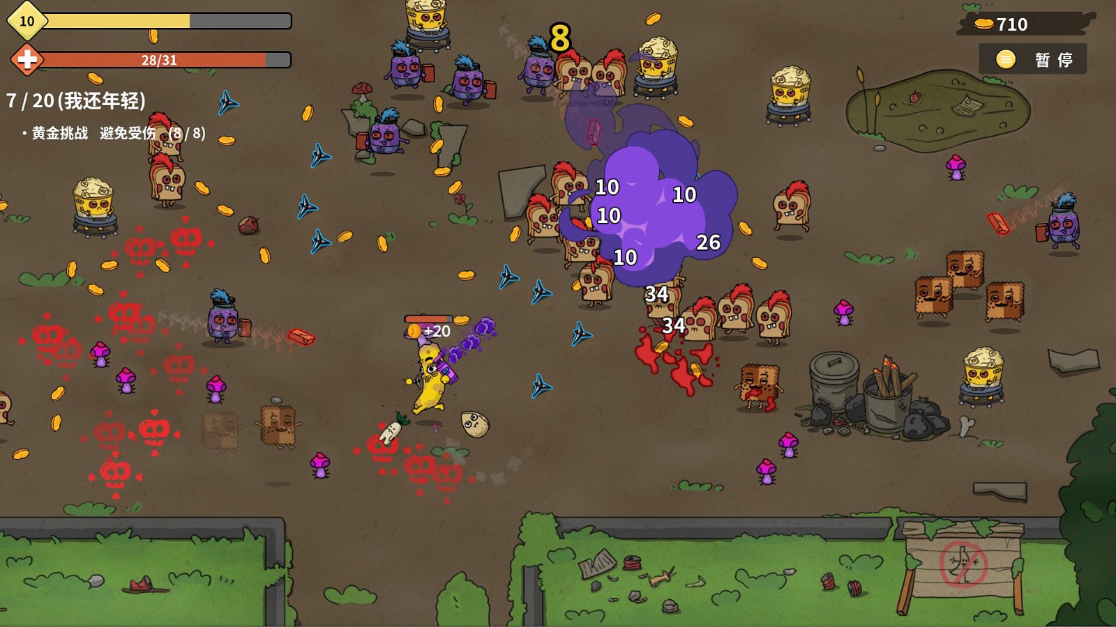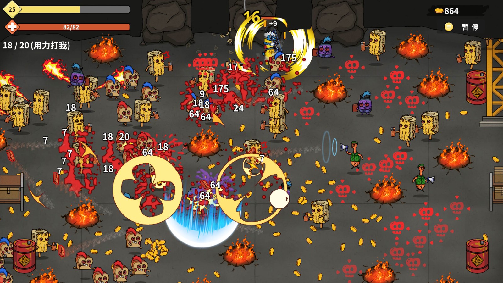《香蕉兄弟》是一款类幸存者、生存rogue游戏。玩家扮演一个香蕉战士,携带百变多样的武器踏入食品加工厂,击杀拥有邪恶意志的副食品怪物,通过丰富的随机事件进行成长,不断变的更强,最终击败BOSS,取得胜利、拯救家园。